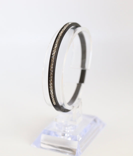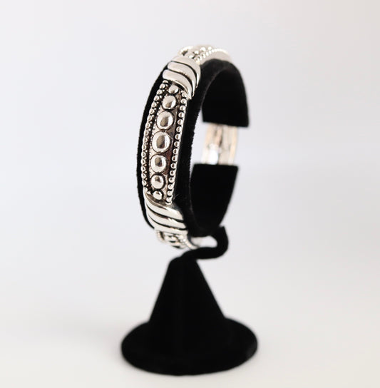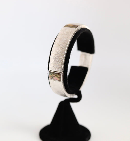 Stretchy Brushed Silver Bracelet with Grey Mother of Pearl Sections