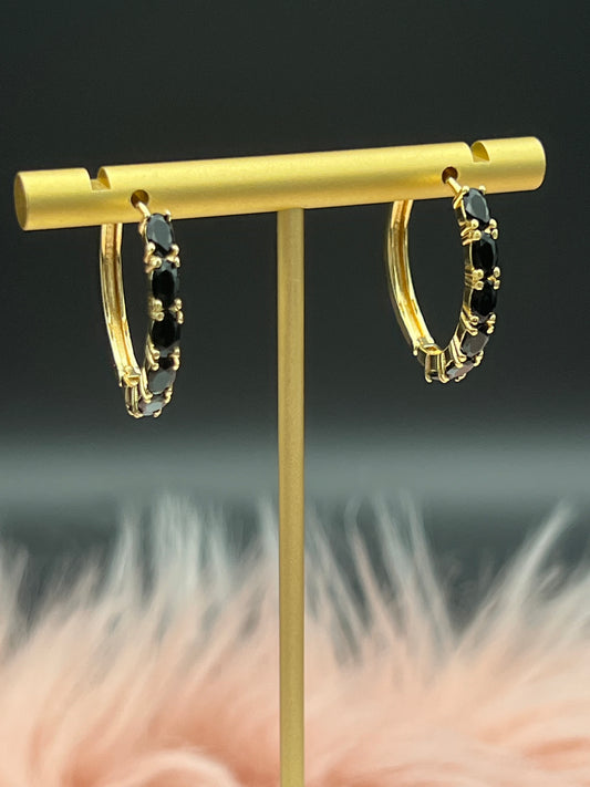 Black Stones Hinged Hoop Earrings