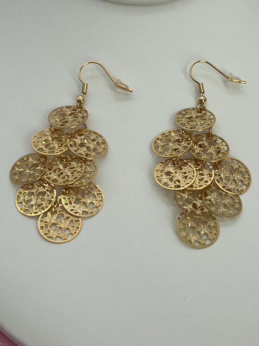 Bohemian Multi Layered Filigree Cut Out Star Circles Dangle Drop Long Statement Earrings, Gold