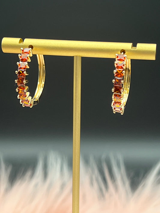 Wine Colored Sapphire Hinged Hoop Earrings