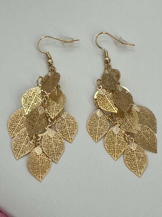 Bohemian Multi Layered Filigree Leaves Dangle Drop Long Statement Earrings, Gold