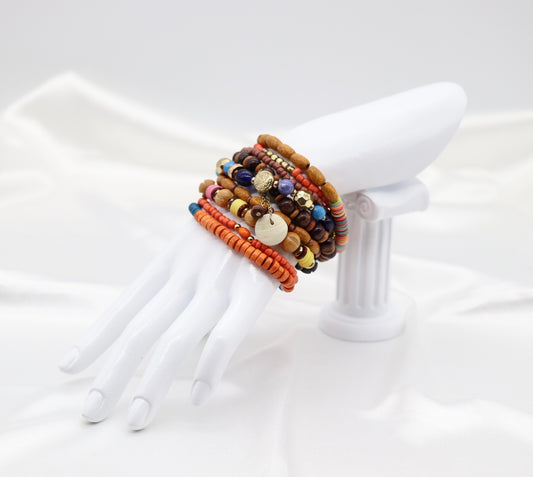Brown, Yellow, Blue Boho Stacking Bracelet Set