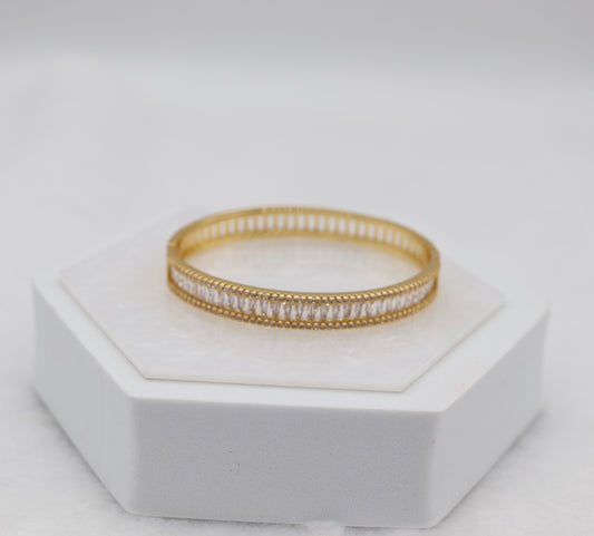 Gold Baguette Stone Bangle Bracelet – Elegant Sparkling Jewelry for Women