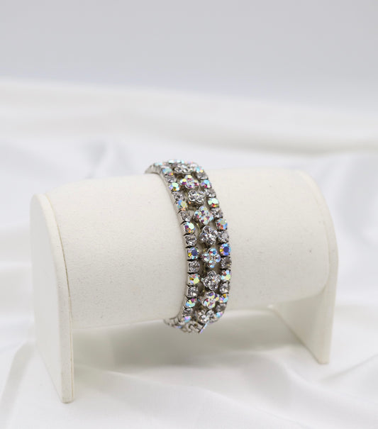 Silver Baguette Stone Bangle Bracelet – Elegant Sparkling Jewelry for Women