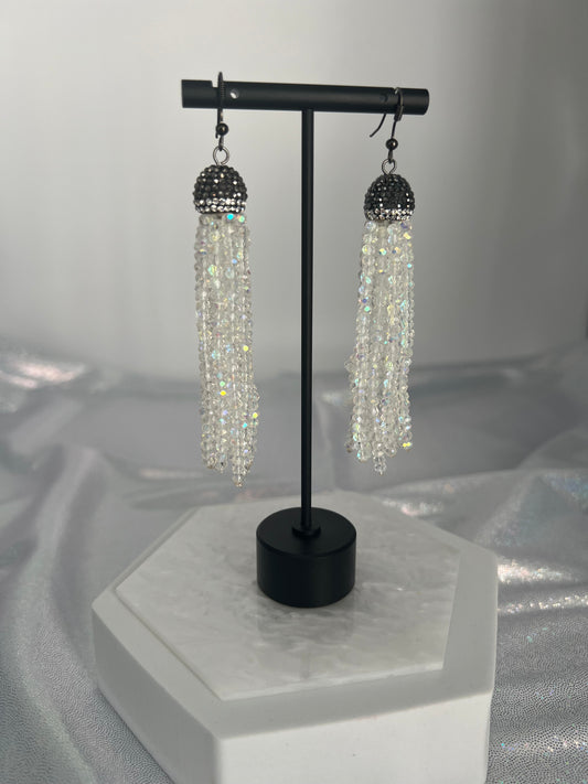 Stretchy Brushed Silver Bracelet with Grey Mother of Pearl Sections