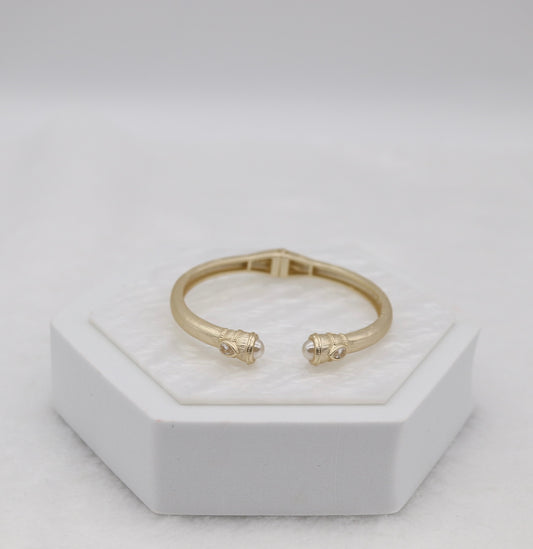 Gold-Tone Cuff Bracelet with Pearl and Crystal Endcaps