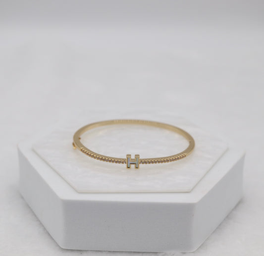 Gold-Tone Hinged Bangle with Crystal Accents and “H” Centerpiece
