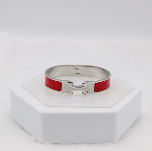 Bold Red Enamel “H” Bracelet – Silver Tone