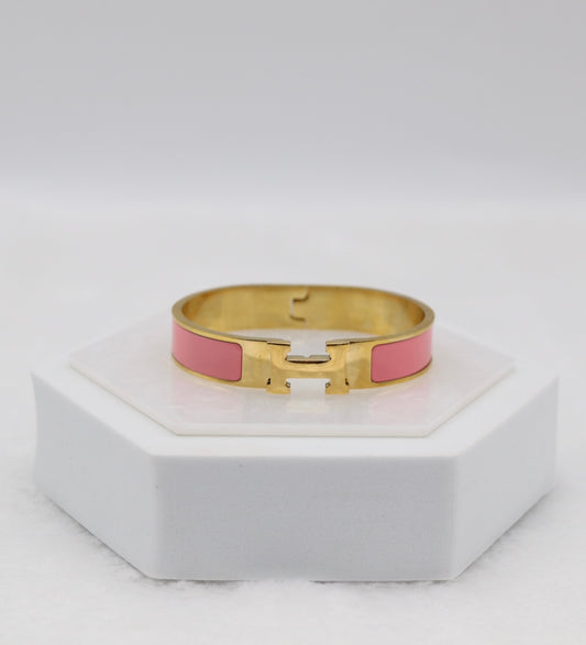 Blush Pink Enamel “H” Bracelet – Gold Tone