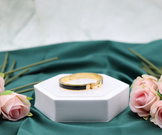 Royal Blue Enamel “H” Bracelet – Gold Tone