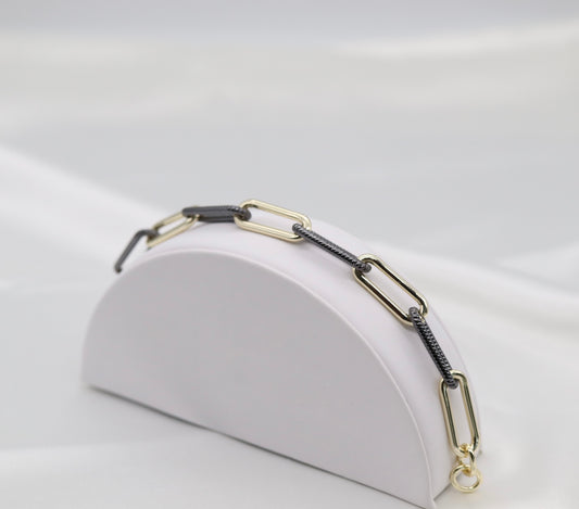 Black Rope and Gold Long Paperclip Bracelet