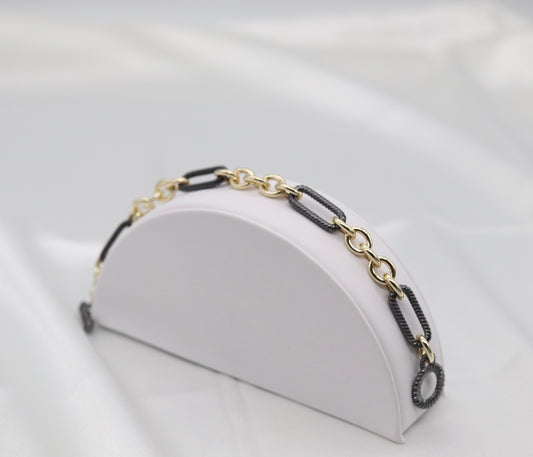 3 Layered Gold Paperclip and Black Box Chain Bracelet