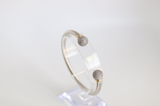 Twisted Cable Cuff Bracelet with Black Bead Accents