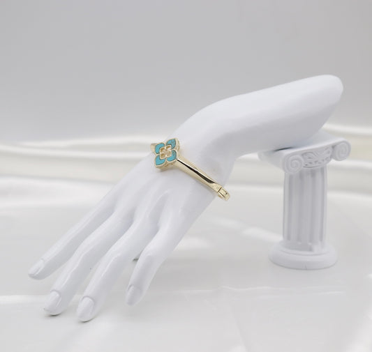 Hazel With CZ Swirl Enamel Hinged Bangle Bracelet