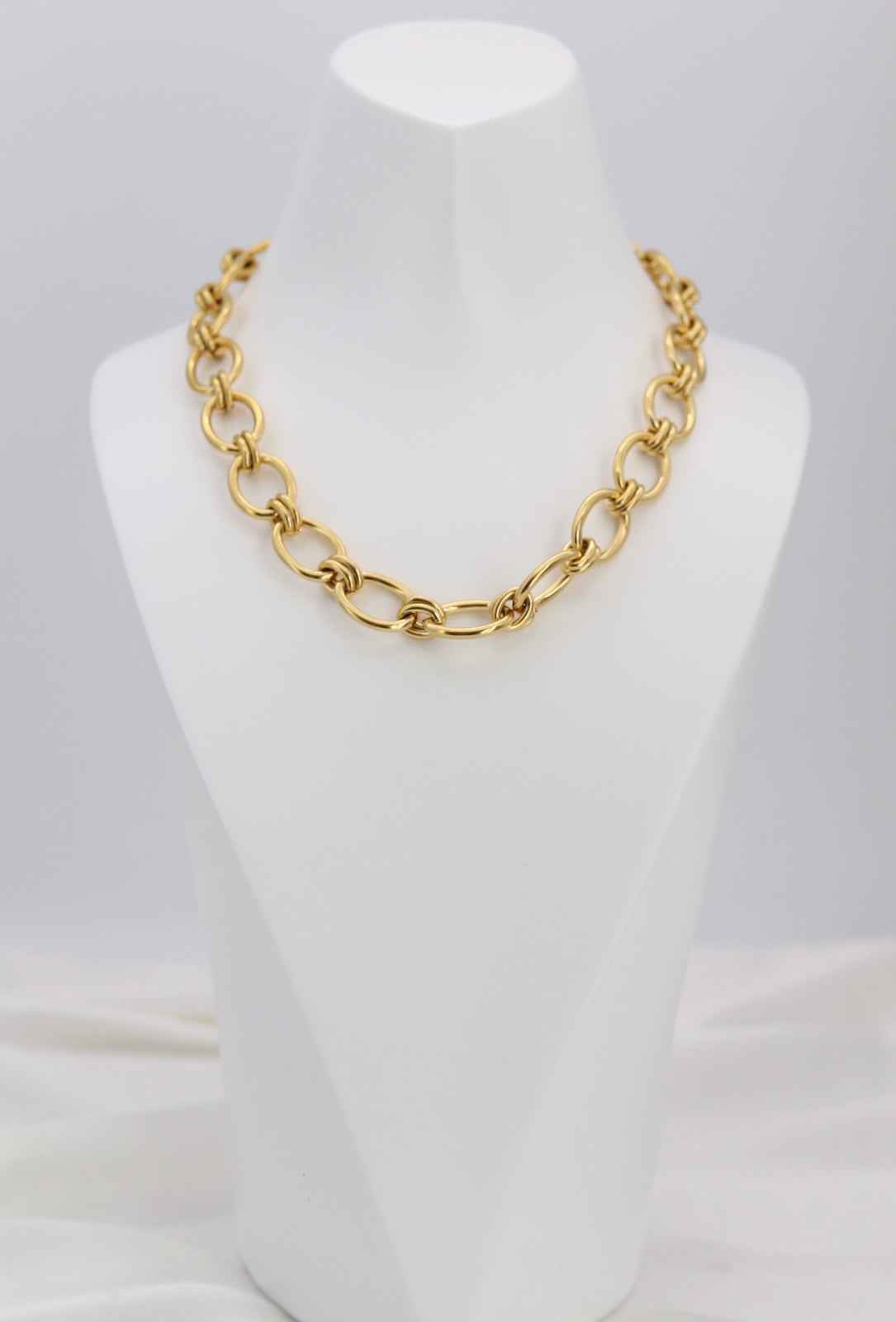 Make a statement with this bold gold oval link chain necklace, designed with smooth, polished oversized links for a modern, confident look. This piece delivers effortless luxury with a clean, timeless silhouette that layers beautifully or stands out on its own. Perfect for elevating everyday outfits or adding edge to evening wear, it’s a must-have staple for any jewelry collection.