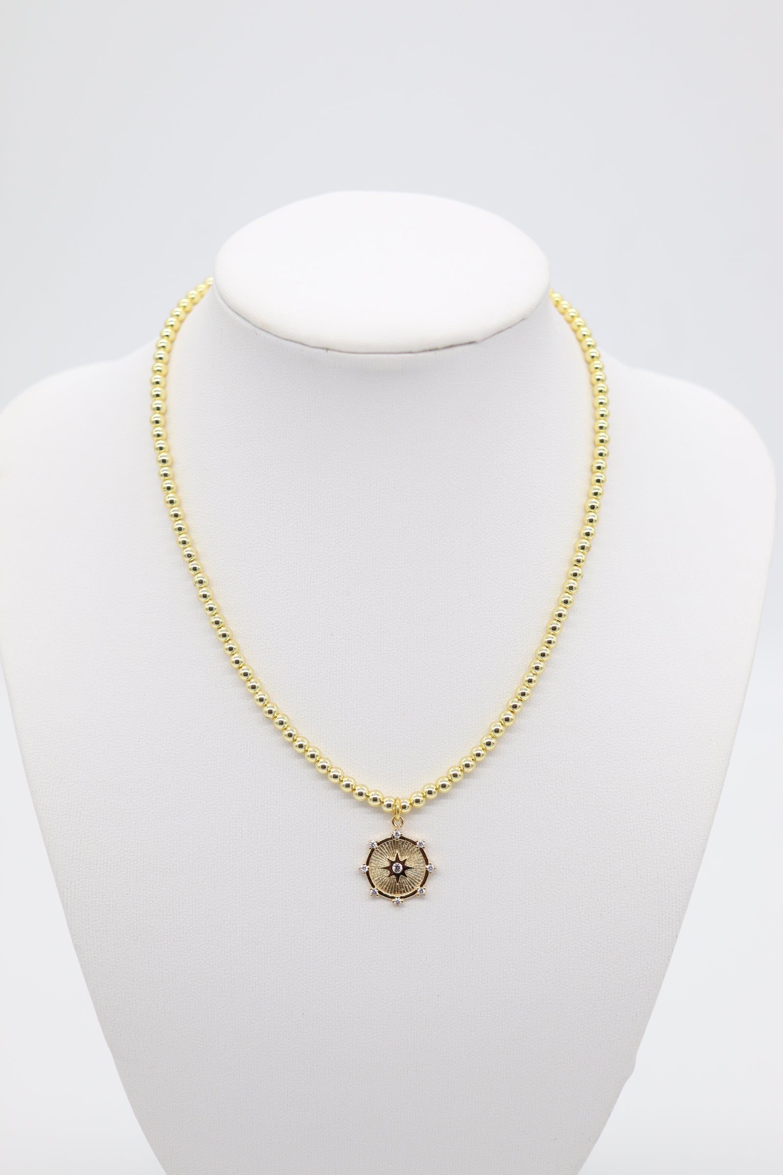 This elegant Gold Beaded Necklace features a stunning Star Pendant (4mm) as its centerpiece. Crafted with exquisite attention to detail, this necklace adds a touch of sophistication to any outfit. The 4mm beaded design provides a delicate yet eye-catching appeal. Perfect for special occasions or everyday wear.
