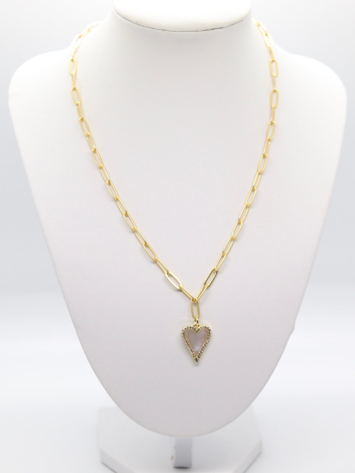 Gold 3.8mm Link Chain Necklace with Pearl Heart Shape Pendant - 18 inches