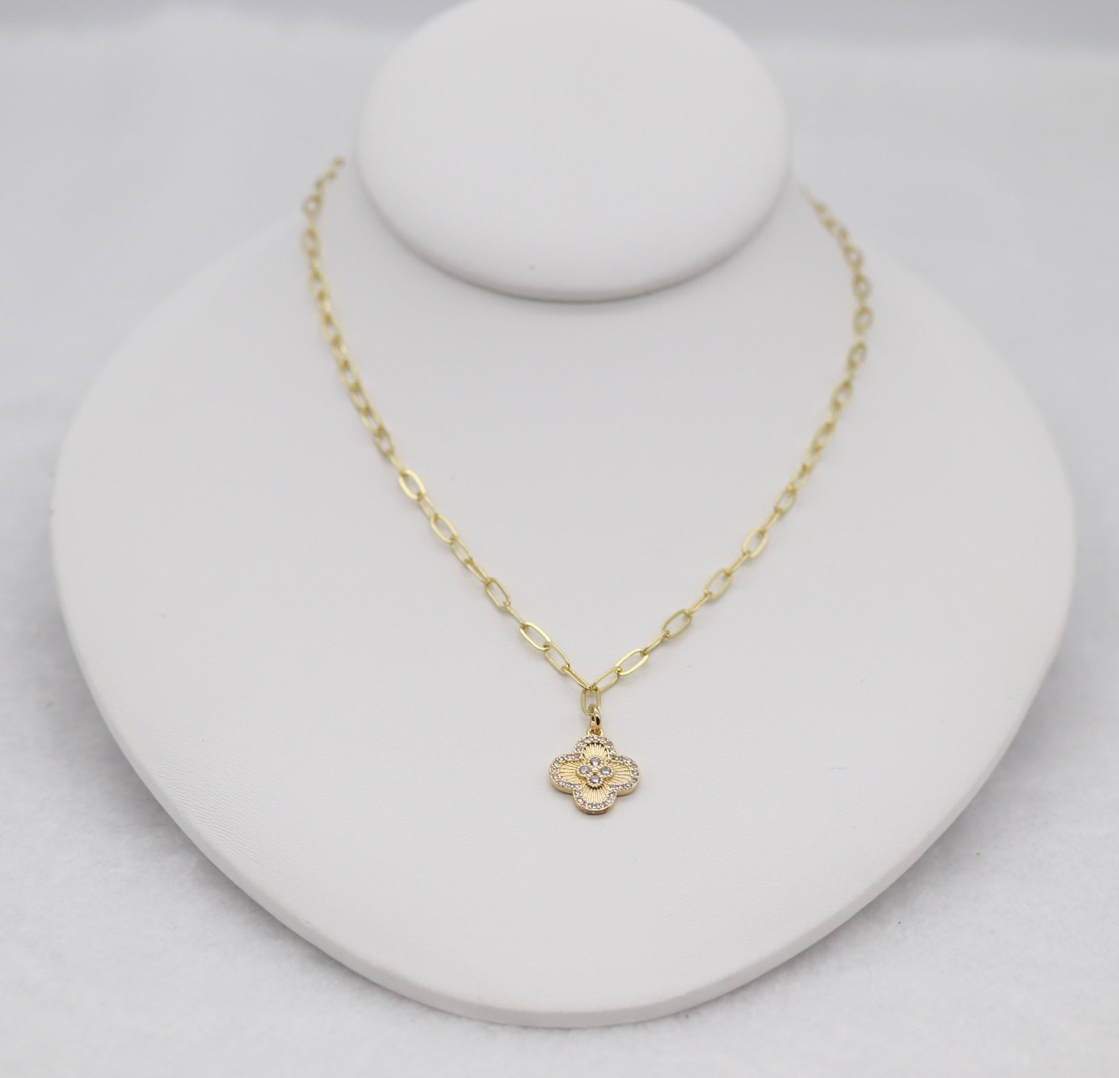 Gold Clover Pendant Necklace – Dainty Linked Chain with Sparkling Accent Charm