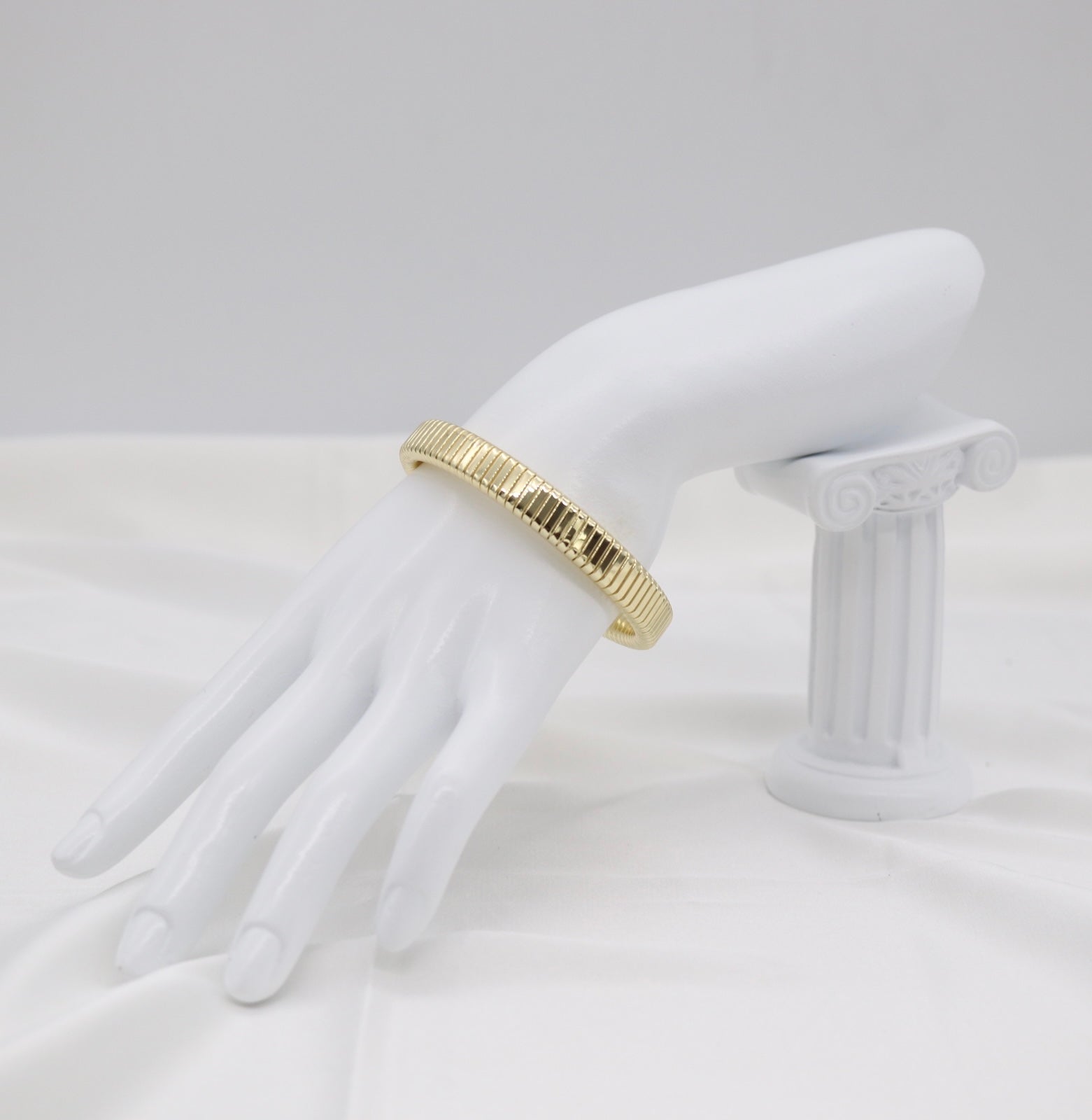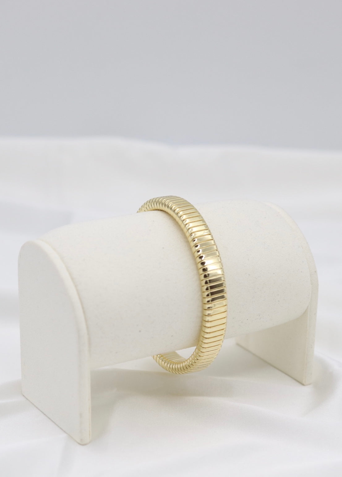 Gold Ribbed Coil Stretch Bangle Bracelet