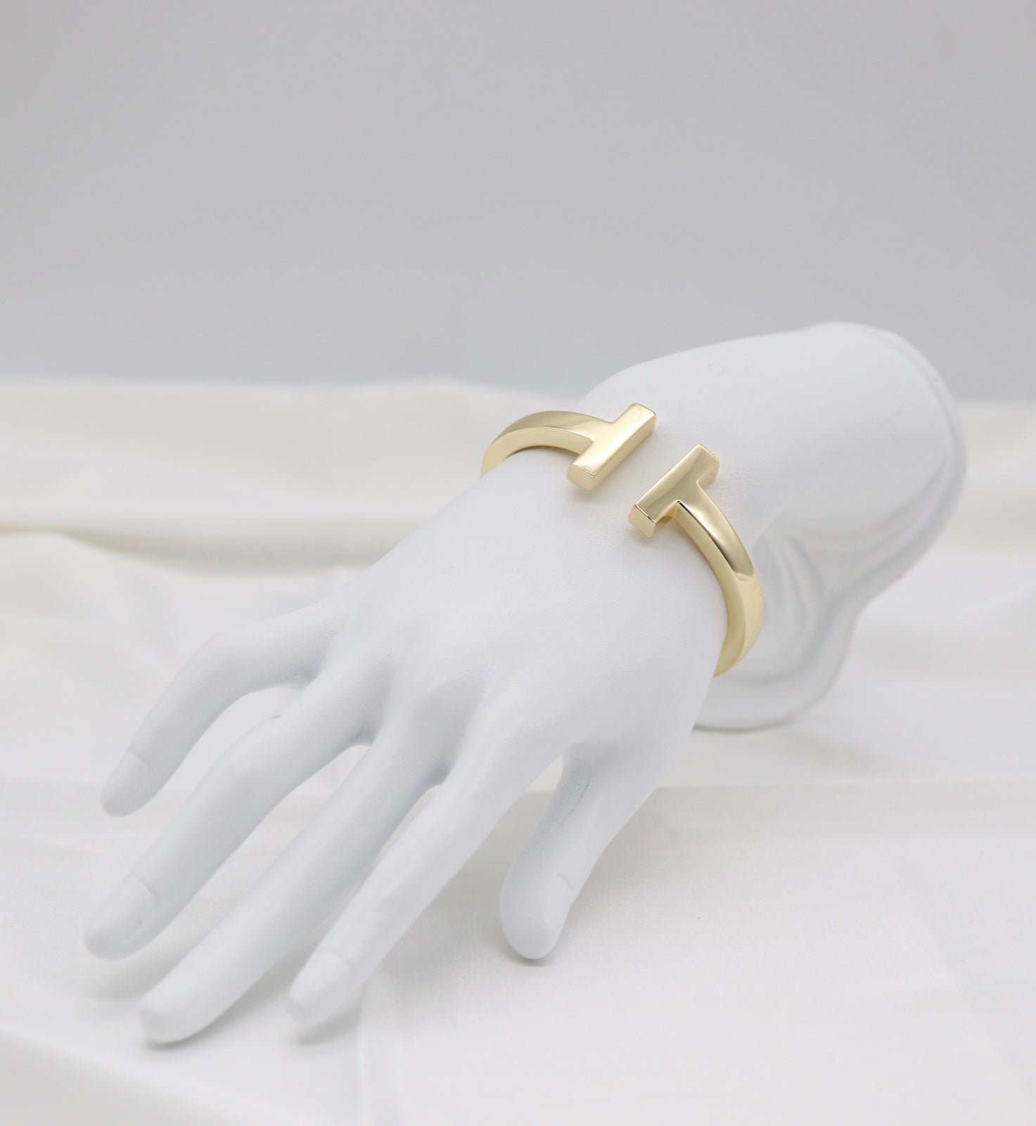This sleek gold-tone cuff features a modern T-bar design with a polished, high-shine finish. Minimal yet bold, it’s a timeless statement piece that adds effortless sophistication to both everyday and elevated looks.