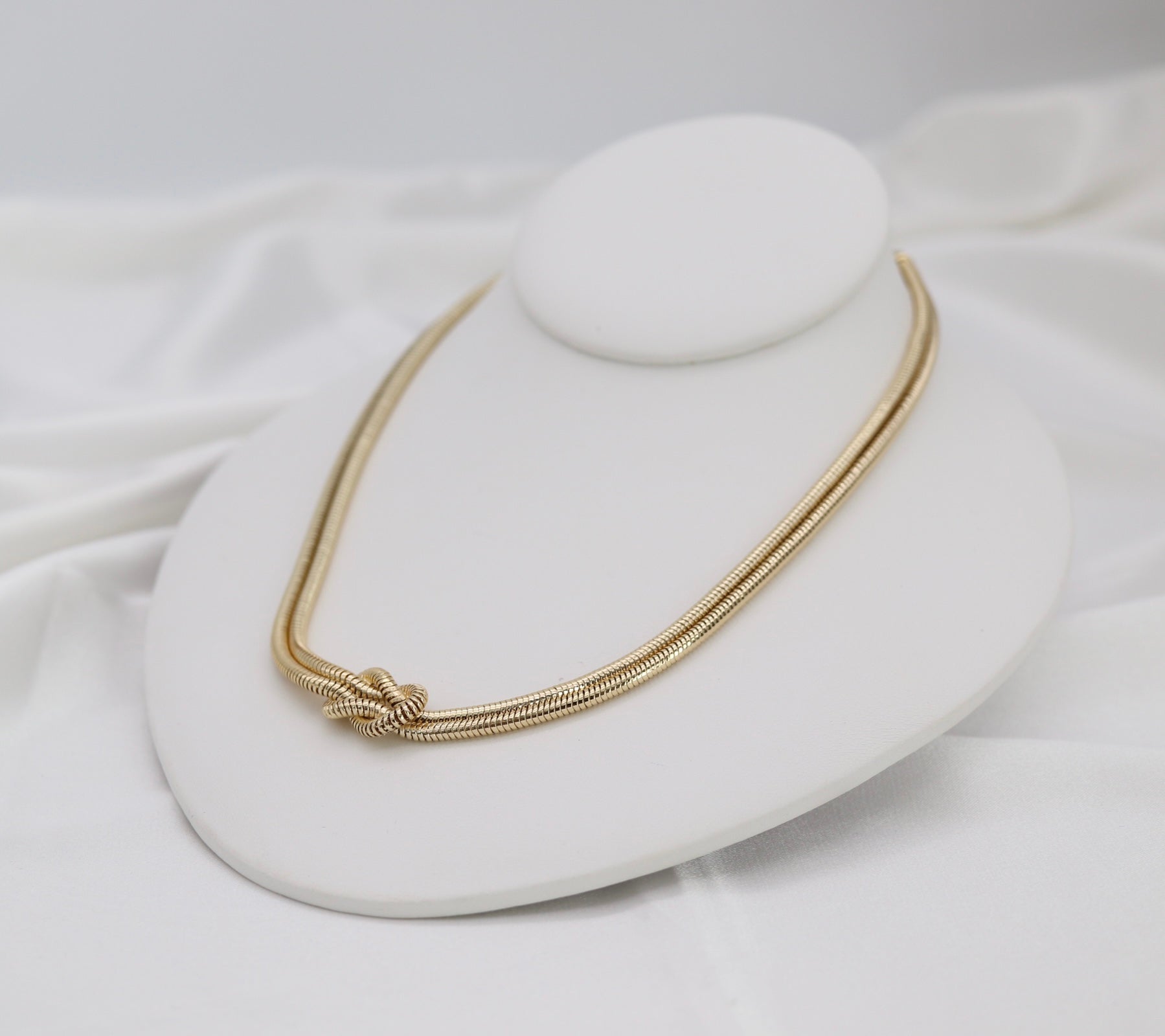 Gold Tone Double Snake Chain Knot Necklace – Modern Statement Collar