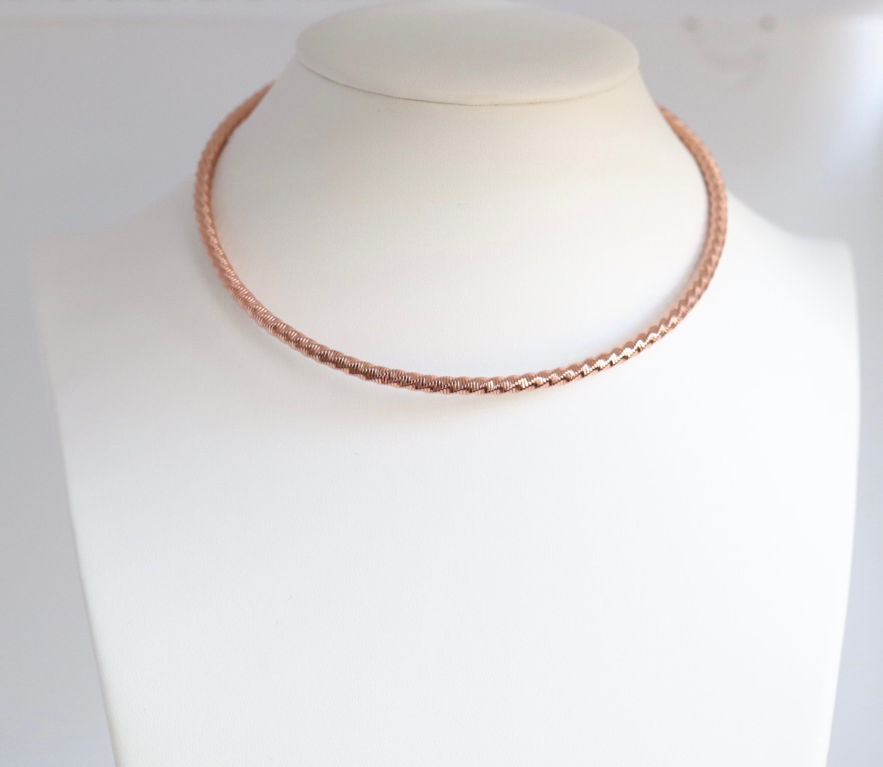 This necklace is a beautiful shade of rose gold. It is a versatile piece that can be dressed up or down to suit the occasion. It is also a great gift for someone special.