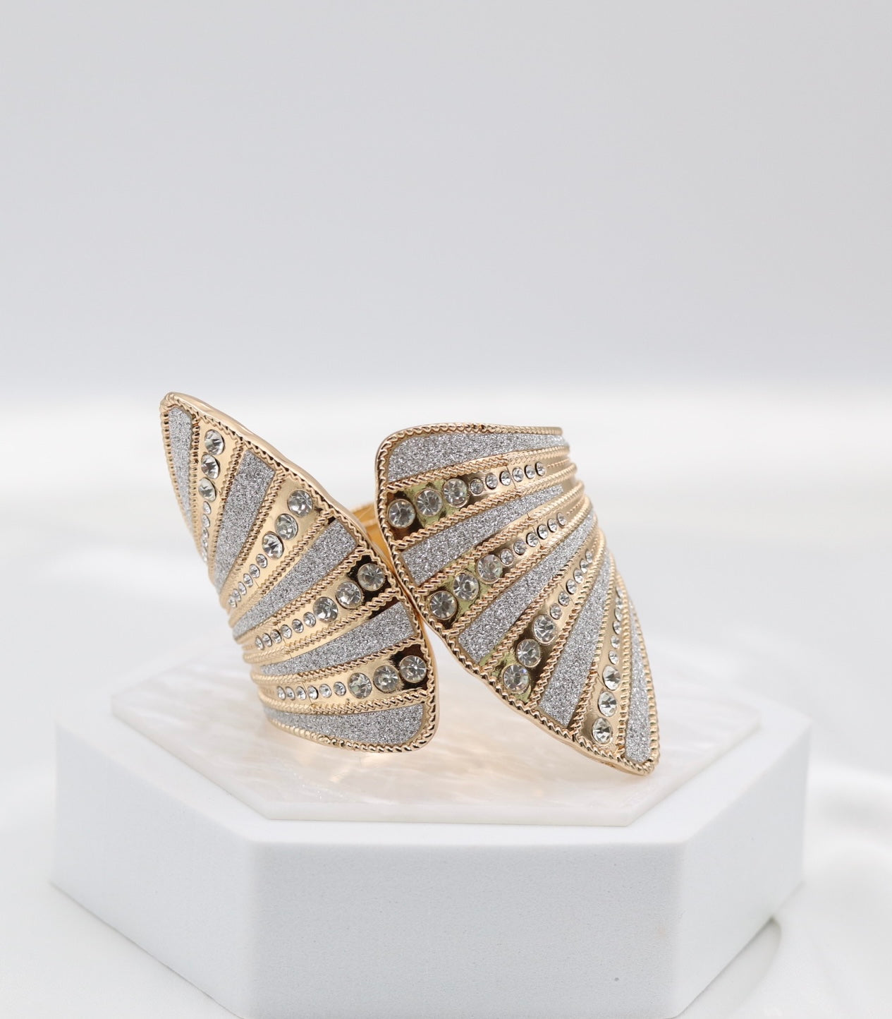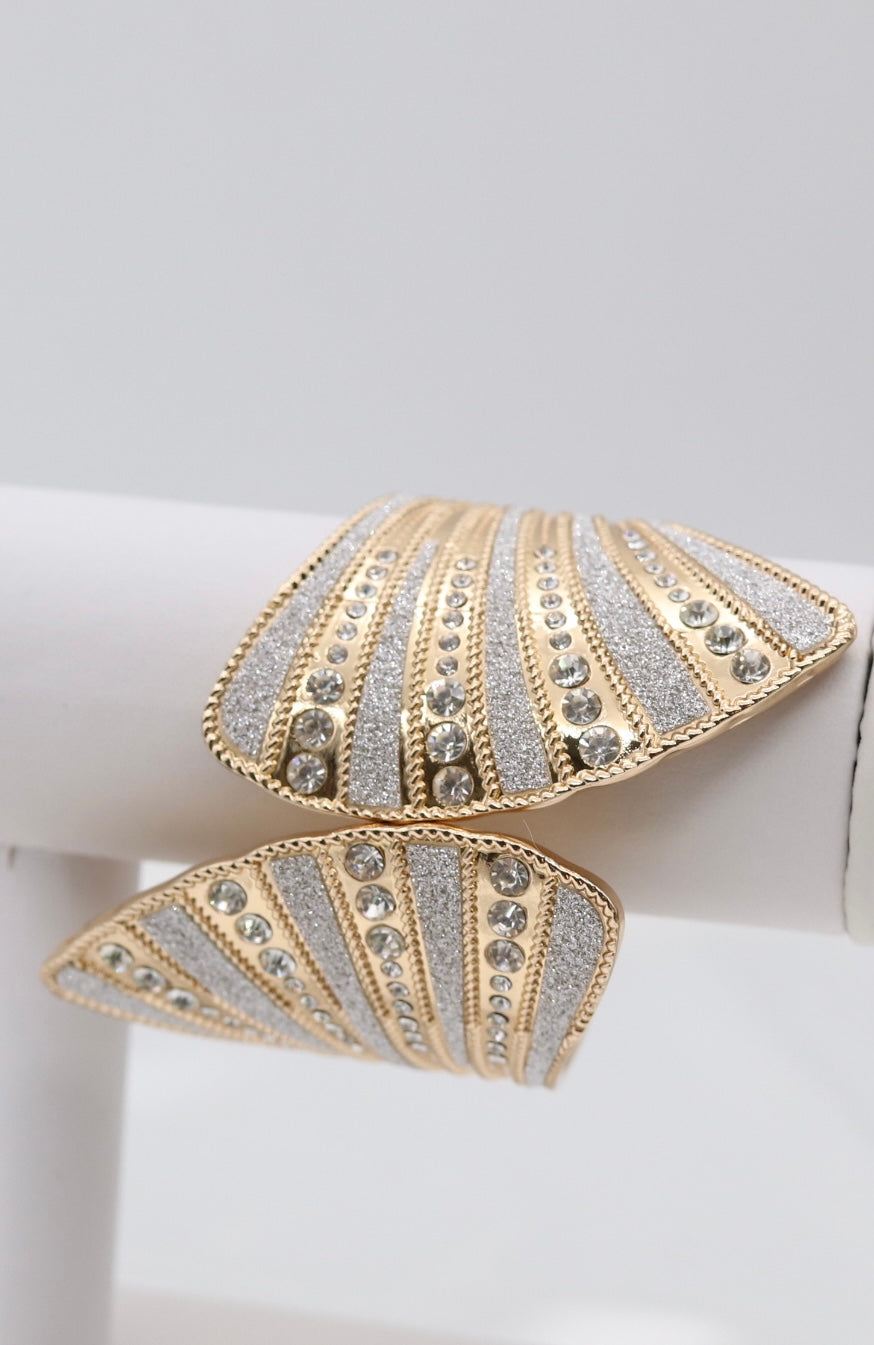 Two-Tone Cable Cuff Bracelet with Gold Crystal Accents
