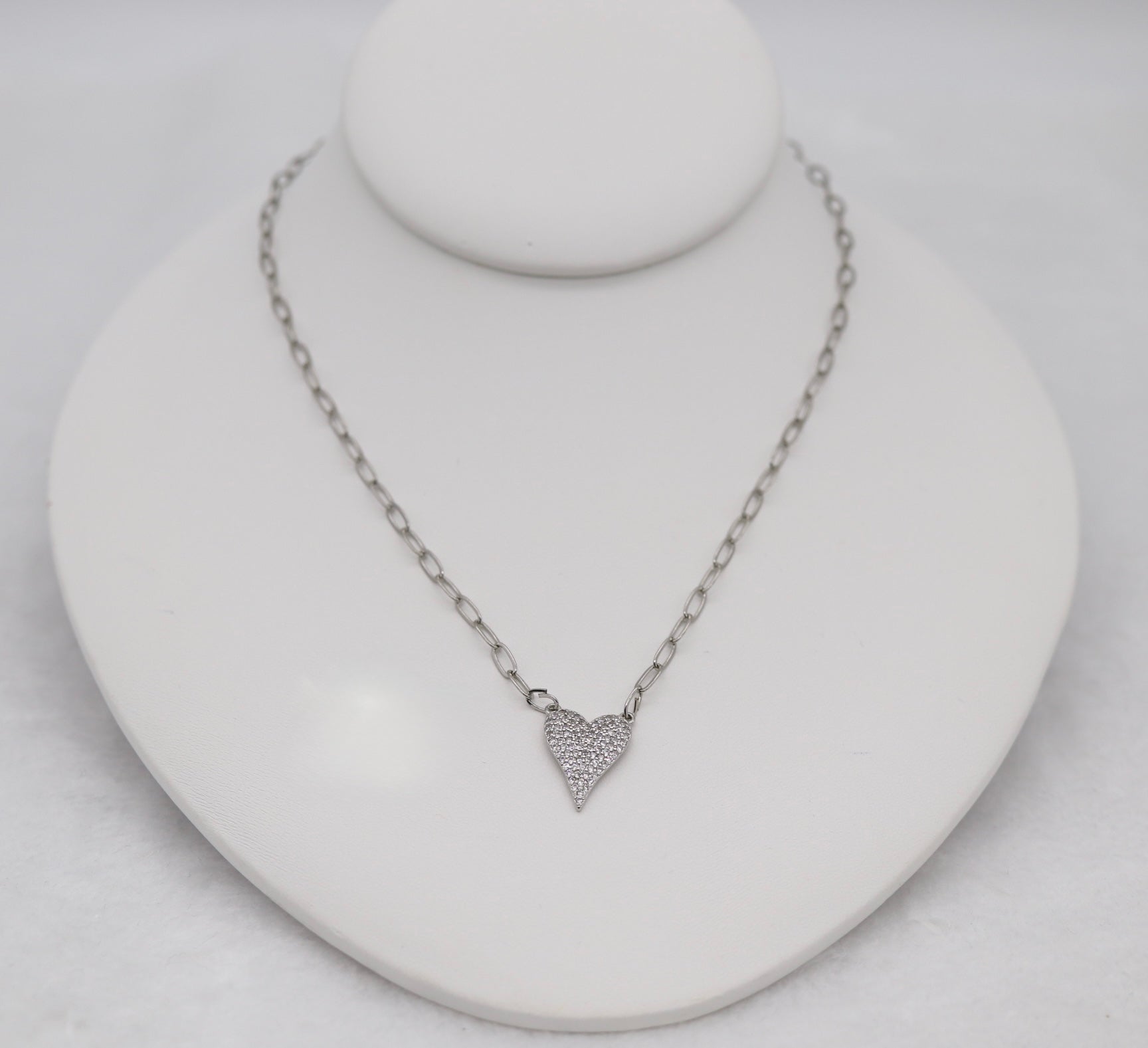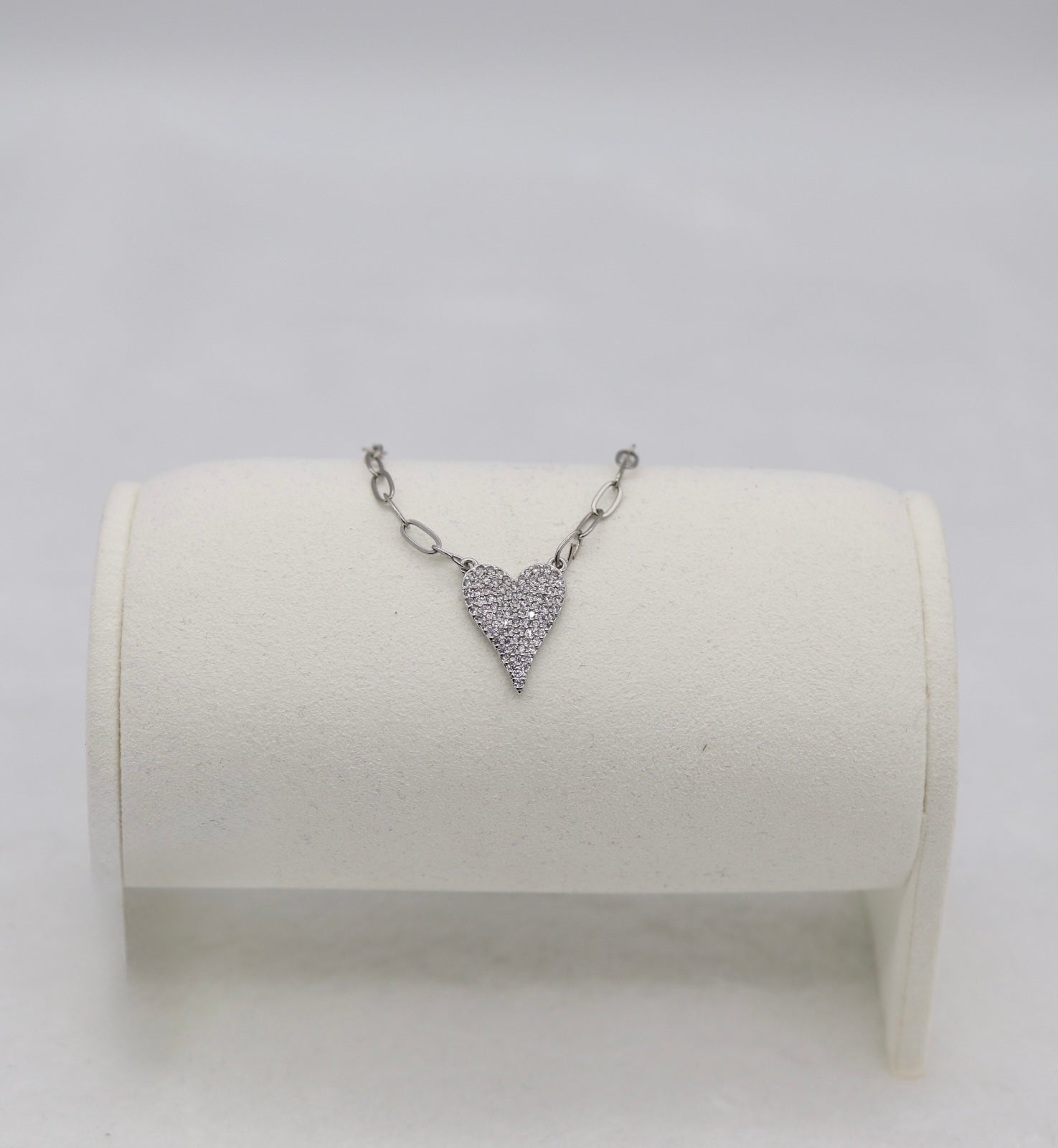 Silver Heart Necklace – Pave Crystal Heart Pendant