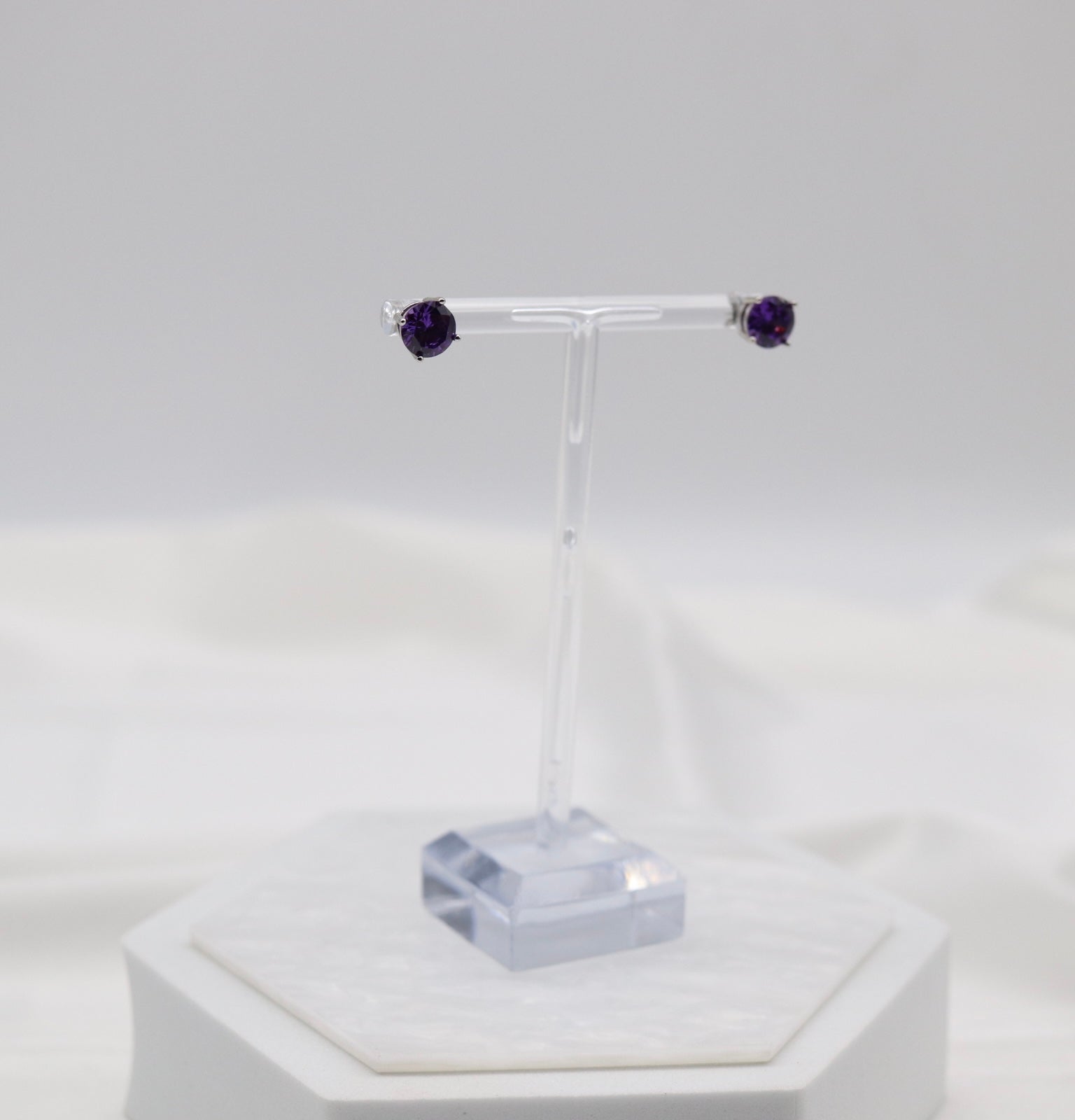 Royal Purple Crystal Stud Earrings – Classic Round Solitaire Studs