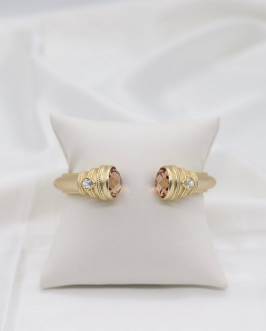 Aqua Blue Gemstone Gold Cuff Bracelet