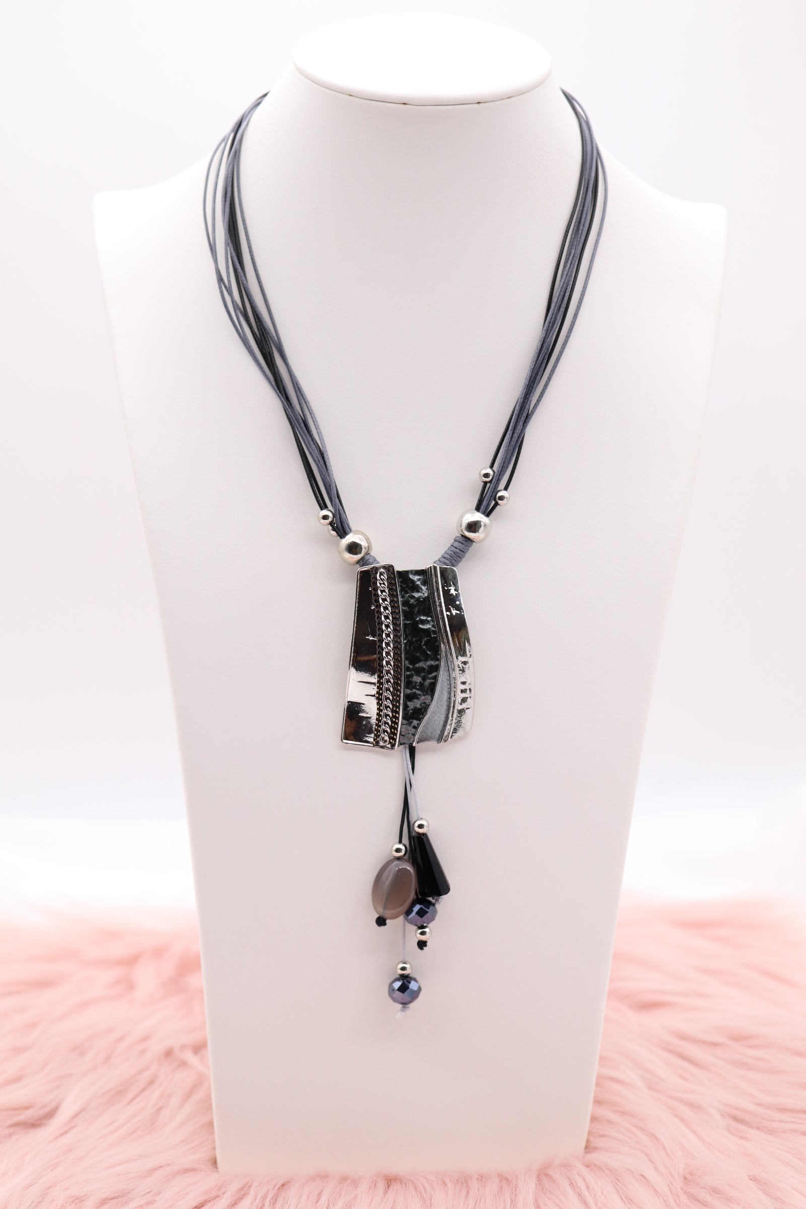 Silver and Black Metal Pendant With Dangling Stones, Multi Black and Silver Rope Necklace