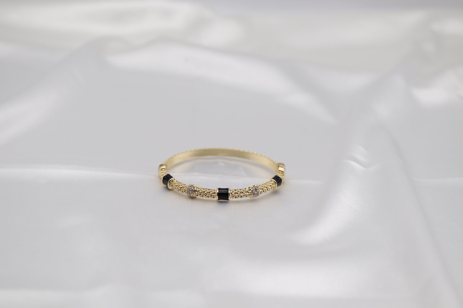 Black Enamel & Crystal Gold Beaded Bangle Bracelet | Elegant Stackable Bracelet for Women