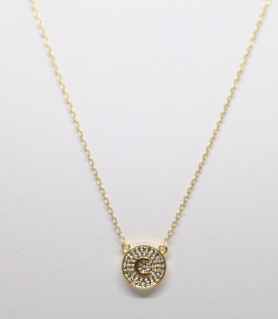 Gold Micropave Initial Necklace w/Vertical Display (C)