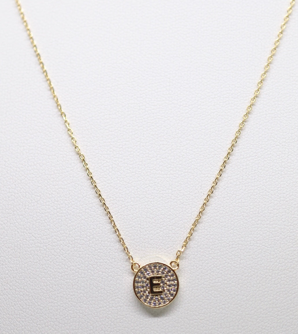 A gold micropave initial necklace with a vertical display of the letter 'E' is a sophisticated and personalized piece of jewelry, featuring a slender, vertically oriented pendant adorned with shimmering micropave stones that form the letter 'E'. This necklace elegantly combines the individuality of a monogram with the luxurious sparkle of micropave, creating a delicate and fashionable accessory perfect for everyday wear.