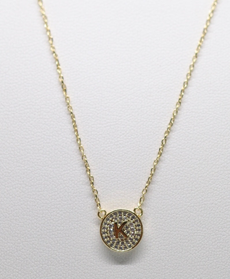 Gold Micropave Initial Necklace w/Vertical Display (K)