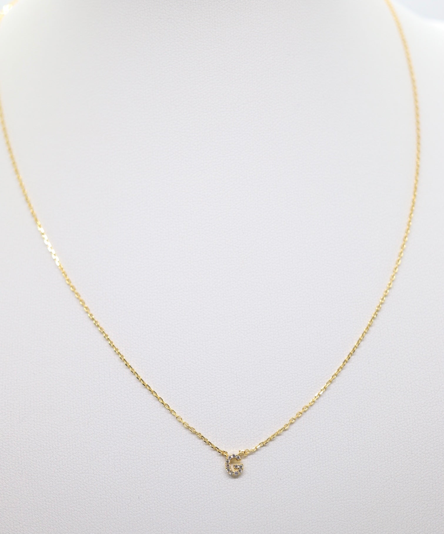 The Gold Mini Pave Initial Necklace (G) is a refined and personalized piece featuring a small gold pendant adorned with intricately set pave stones that delicately enhance the initial "G." This necklace effortlessly combines a touch of glamour with a personal touch, making it a sophisticated and versatile accessory for various occasions.