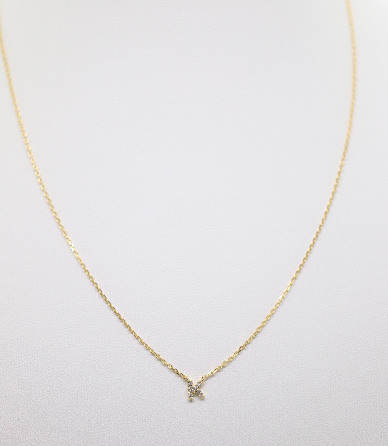 The Gold Mini Pave Initial Necklace (K) is an elegant and personalized accessory, featuring a petite gold pendant adorned with meticulously set pave stones that subtly sparkle, emphasizing the initial "K." This necklace blends sophistication with a touch of individuality, making it a versatile and stylish addition to your jewelry collection.