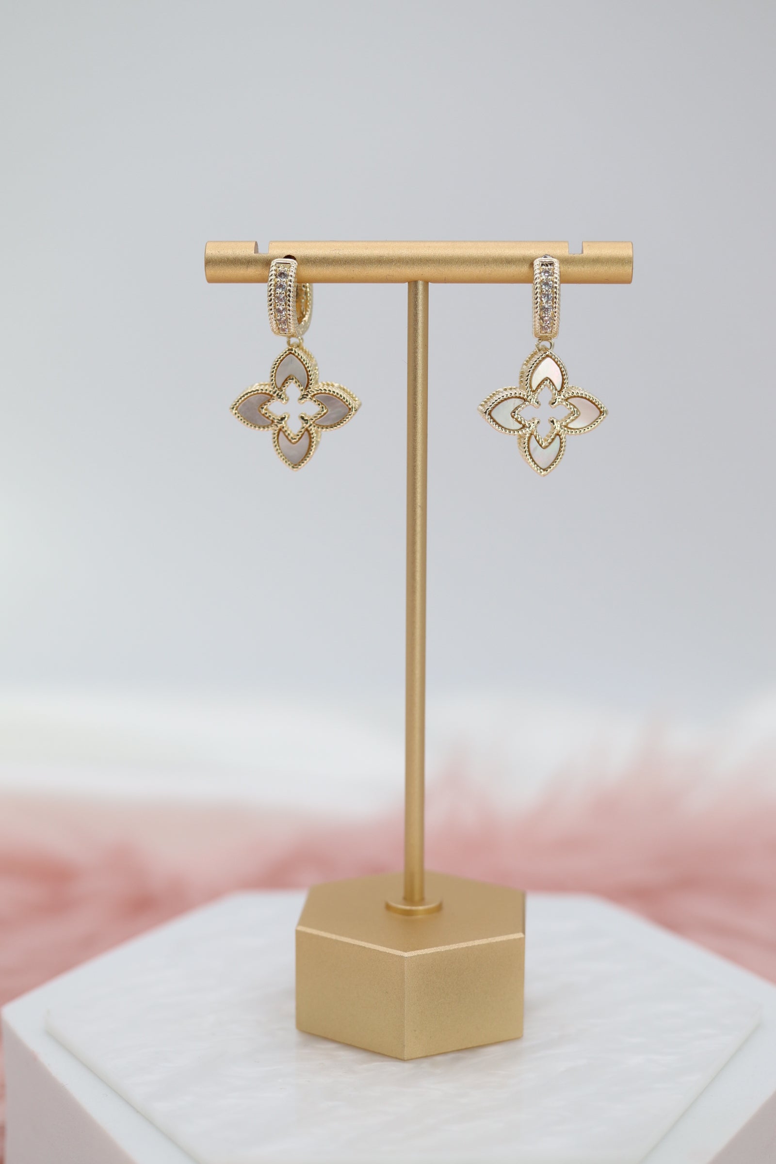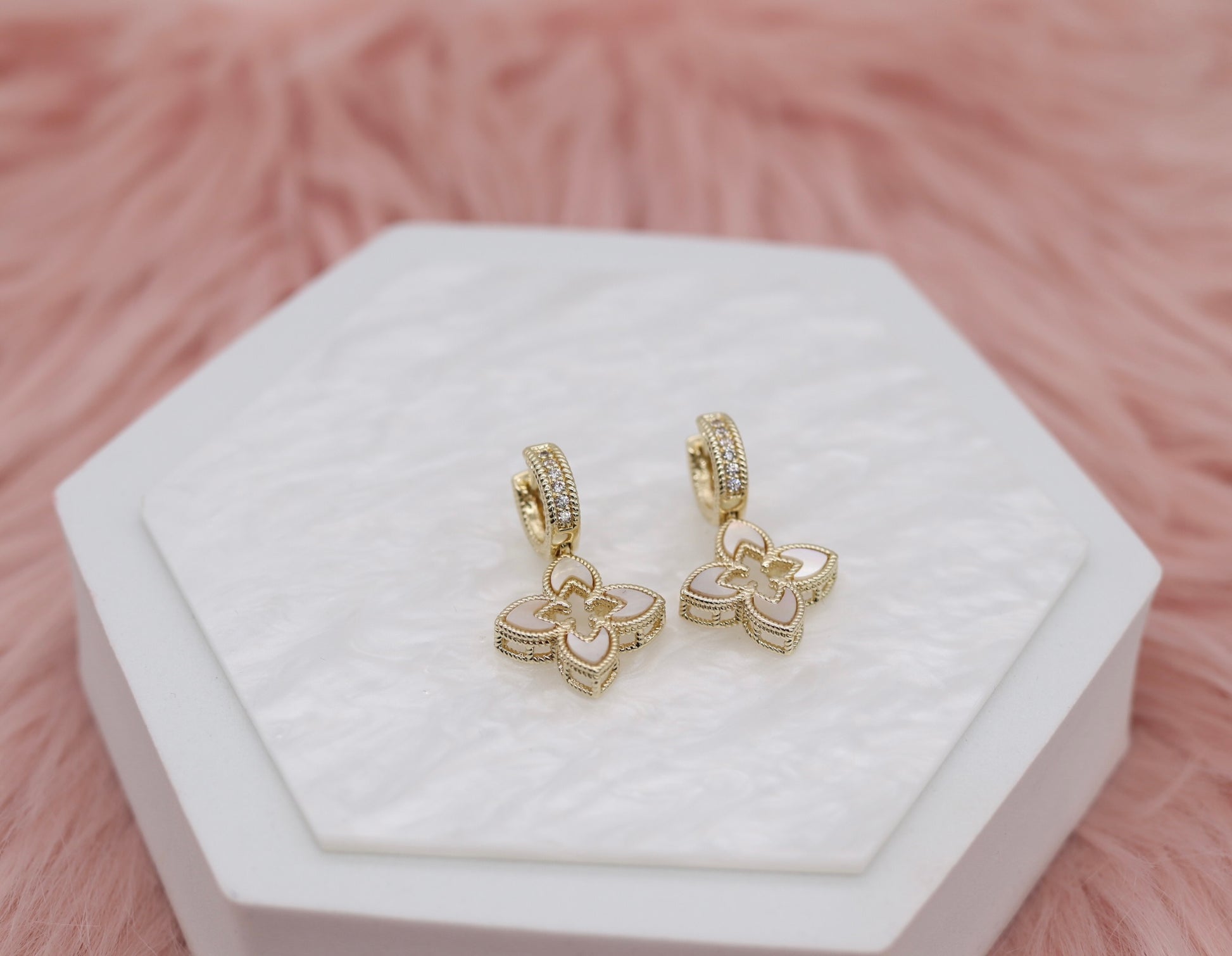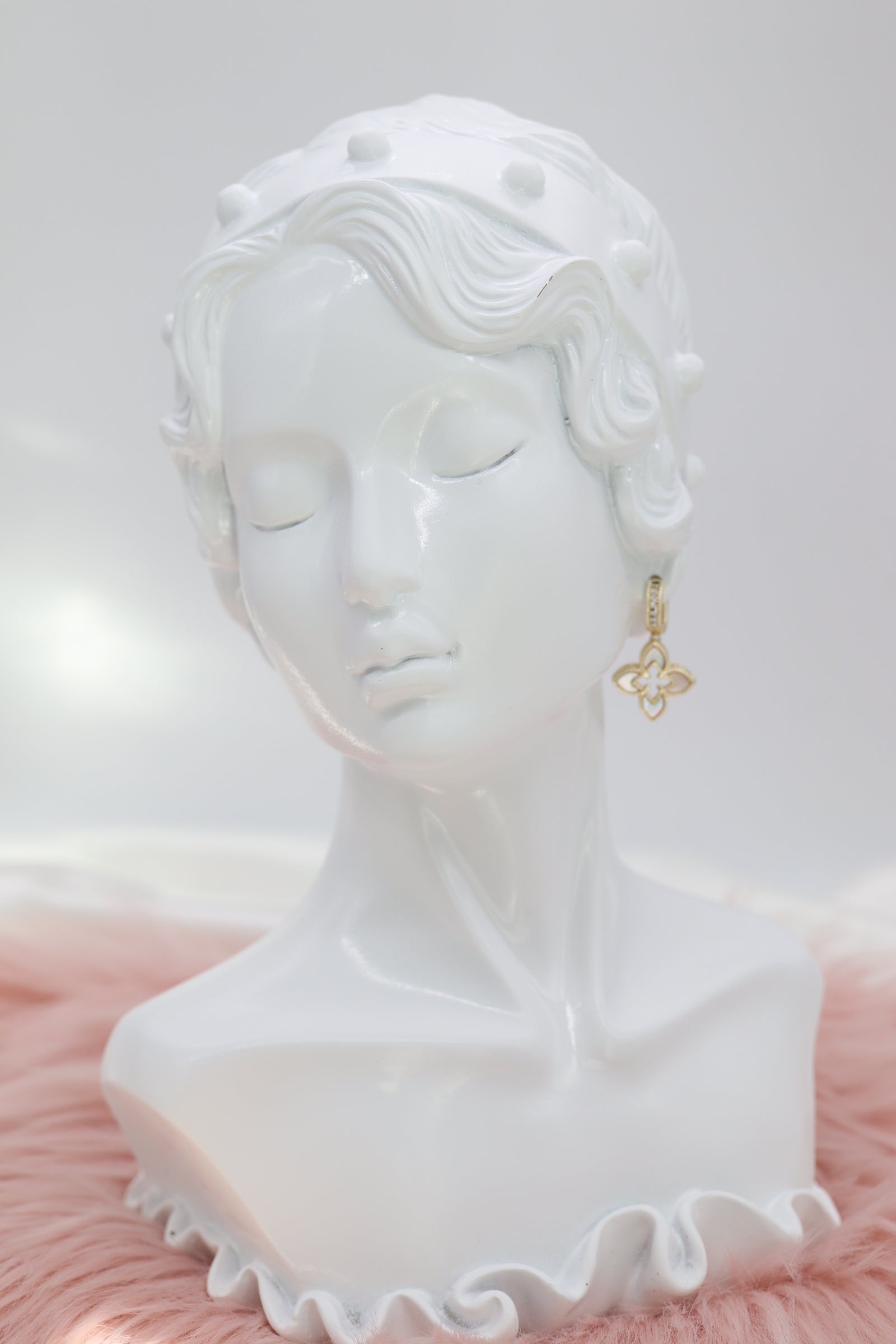 The CZ Paved Cuff Clover Earrings showcase a chic clover design adorned with sparkling cubic zirconia, symbolizing luck and elegance. With a sleek cuff style that hugs the ear, these earrings offer a modern yet timeless touch to any outfit.