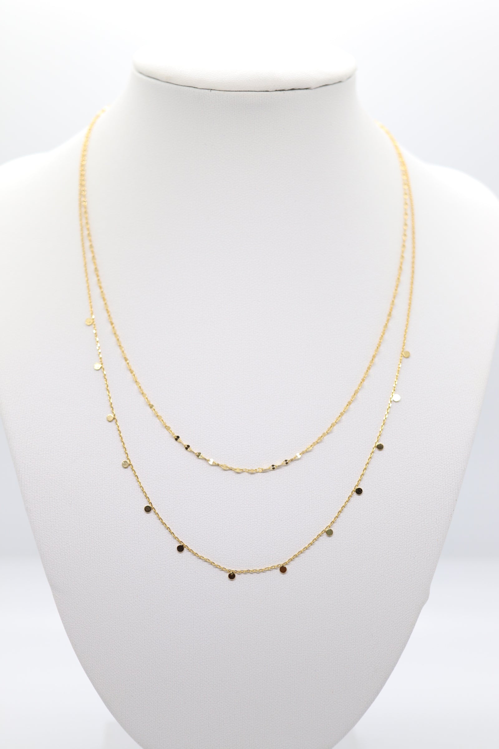 Electroplated Double Layer Oval Smash Twist & Dainty Paillette Chain Necklace