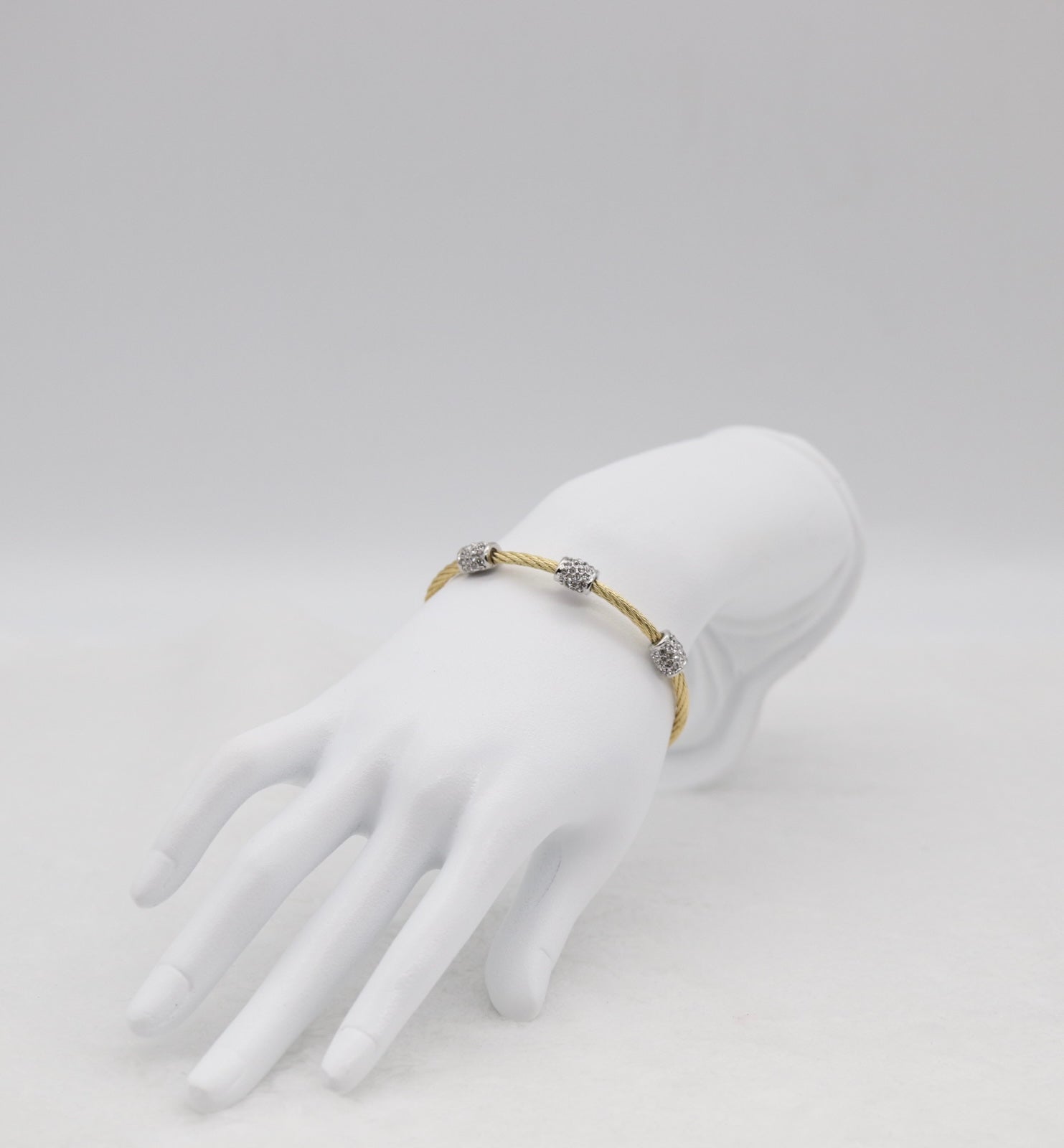 Two-Tone Cable Cuff Bracelet with Gold Crystal Accents