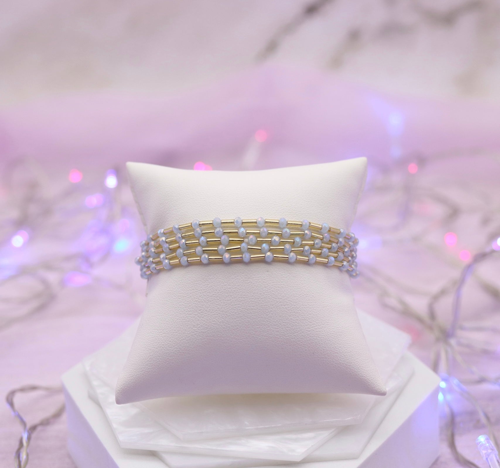 Gold Metal Bar Blue Seed Bead Bracelet Set