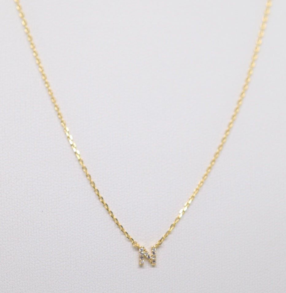 Gold Mini Pave Initial Necklace (N)