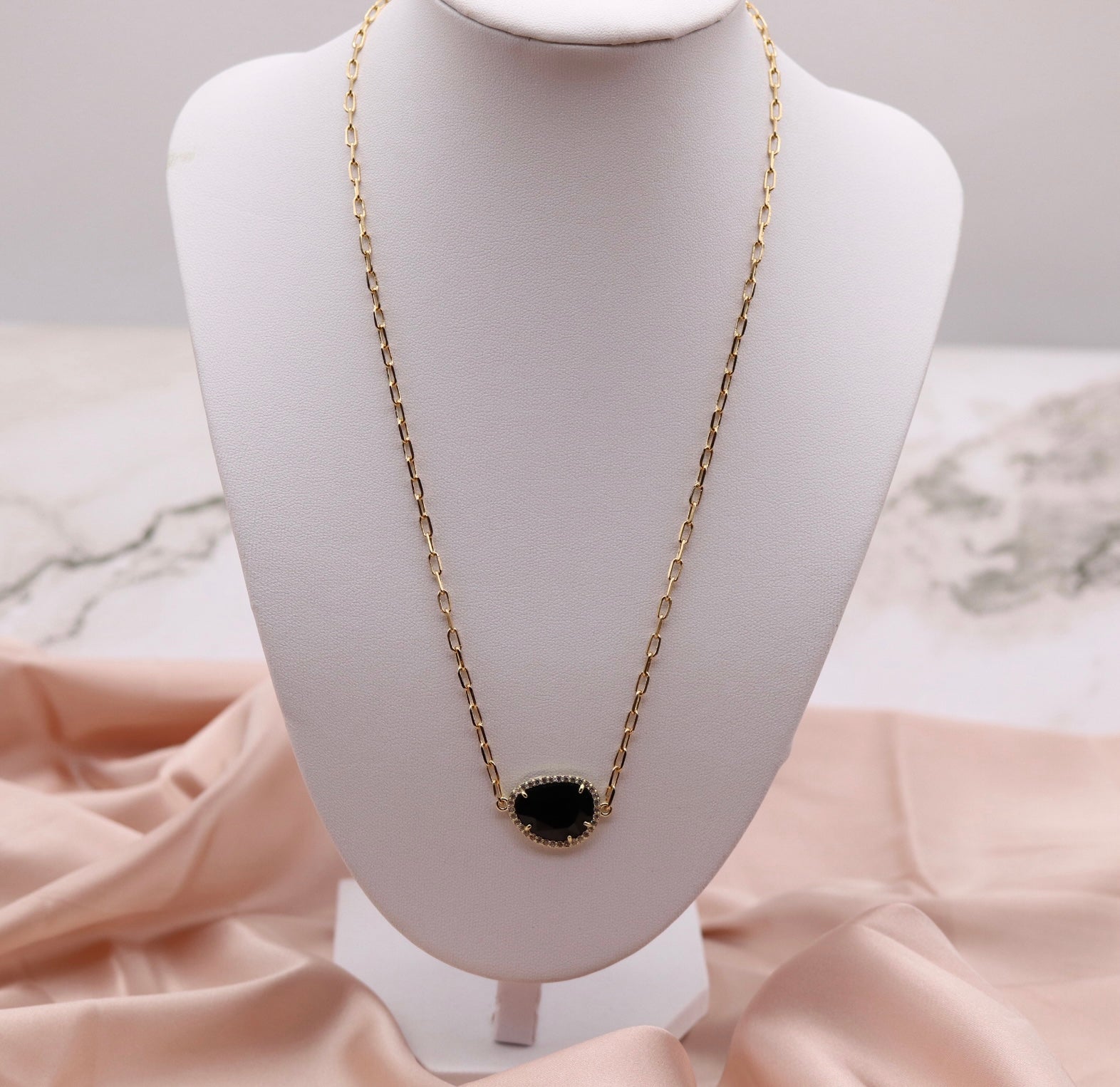 Gold Paperclip Chain Necklace with Charcoal Pendant