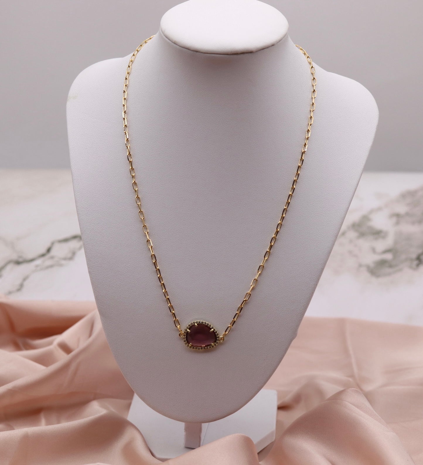 This necklace is the perfect accessory to add a touch of elegance to any outfit. It's crafted from lightweight materials, so it won't weigh you down. Plus, the beautiful violet pendant adds a pop of color that's sure to turn heads. This necklace is a must-have for any fashionista.
