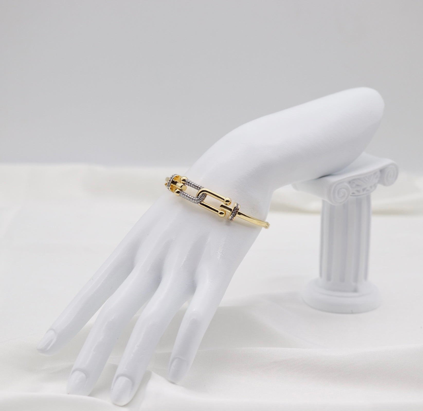Gold Pavé Hardware Bangle Bracelet – Modern Chic Design