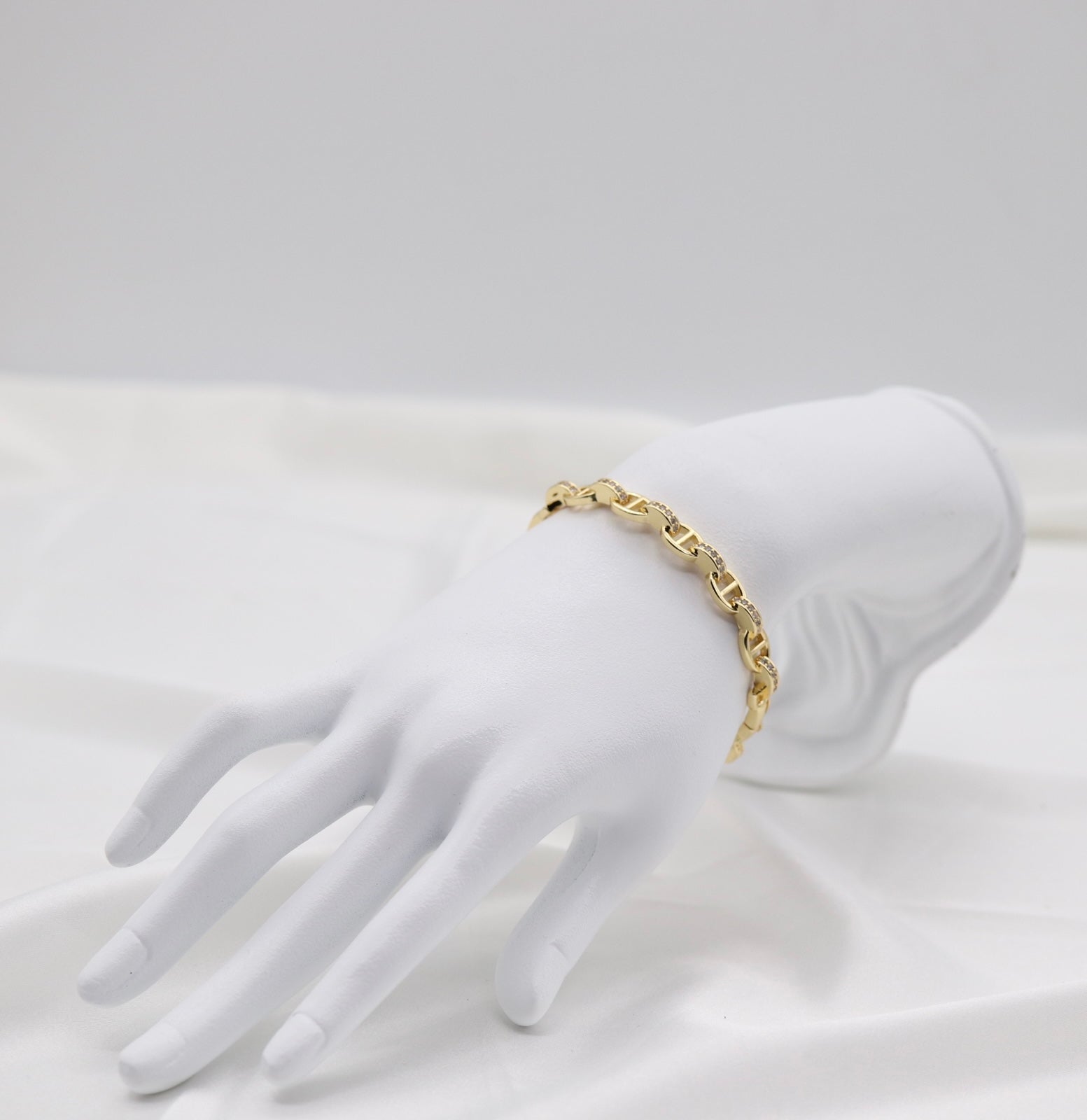 Gold Pavé Oval Link Bracelet – Sleek & Timeless Design