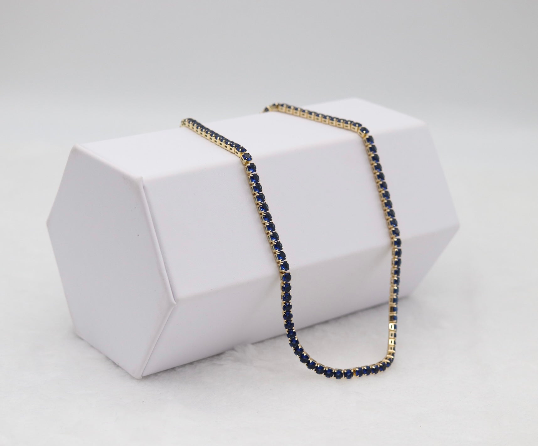 Sapphire Blue Tennis Necklace – Gold Tone Classic Elegance