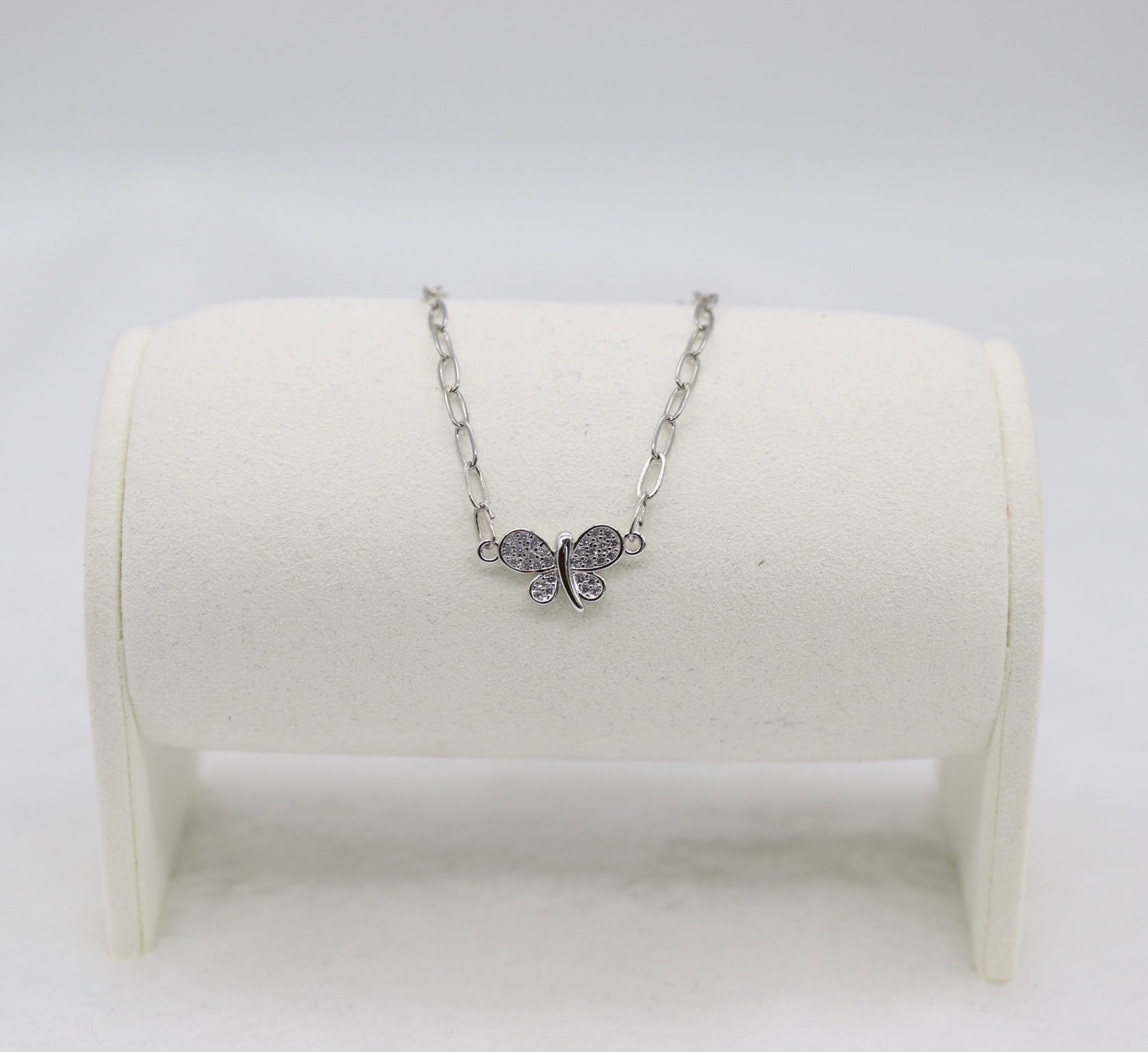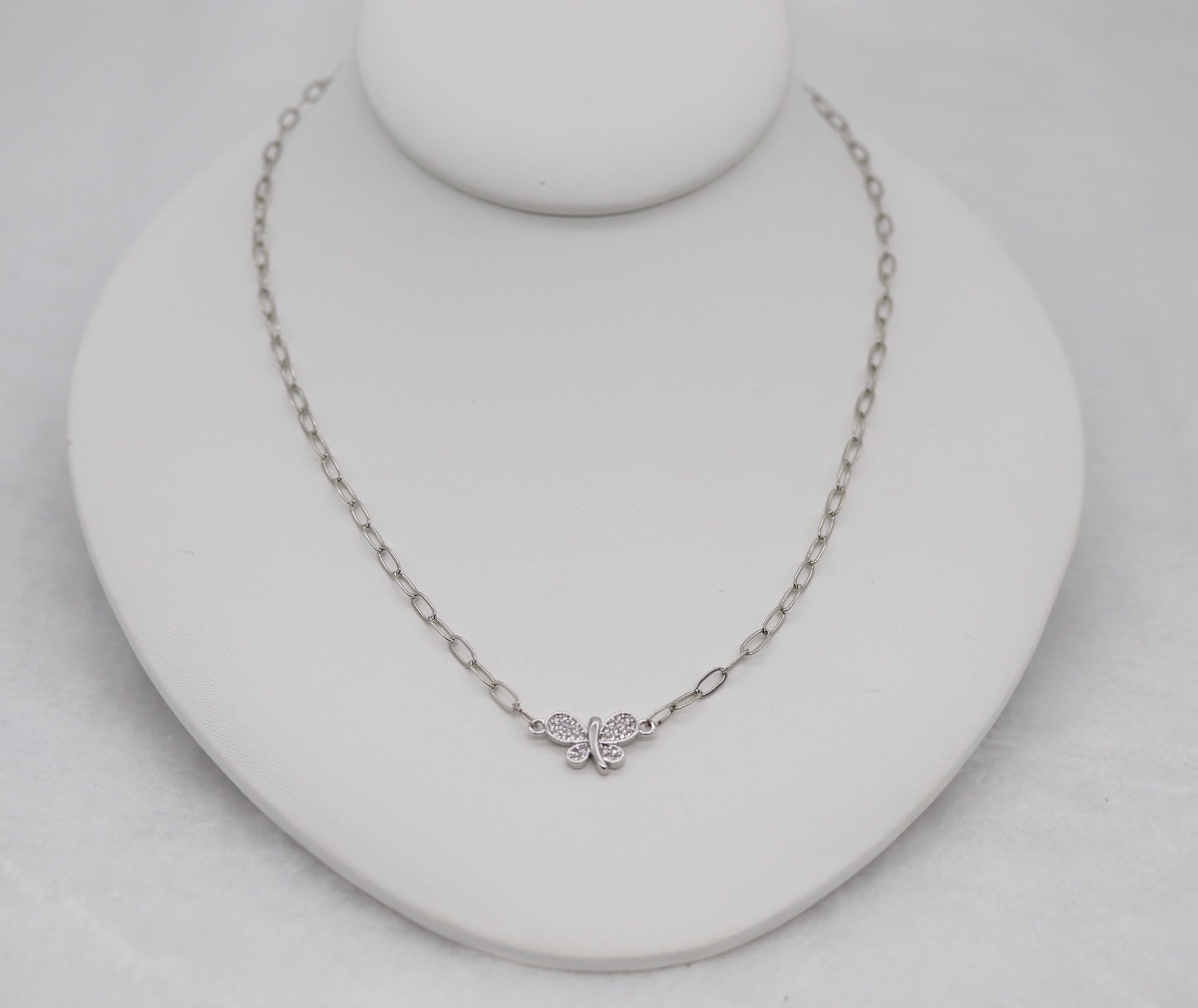 Silver Butterfly Necklace – Sparkling Butterfly Pendant on Paperclip Chain
