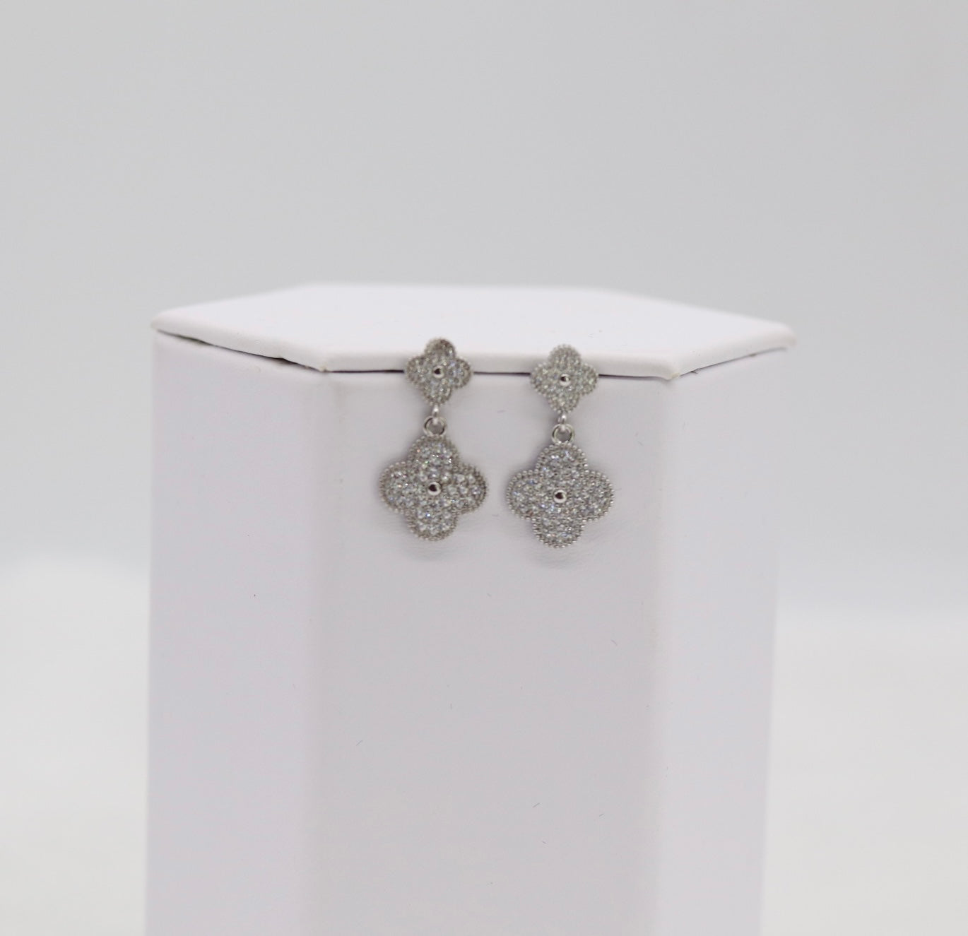 Silver Clover Drop Earrings