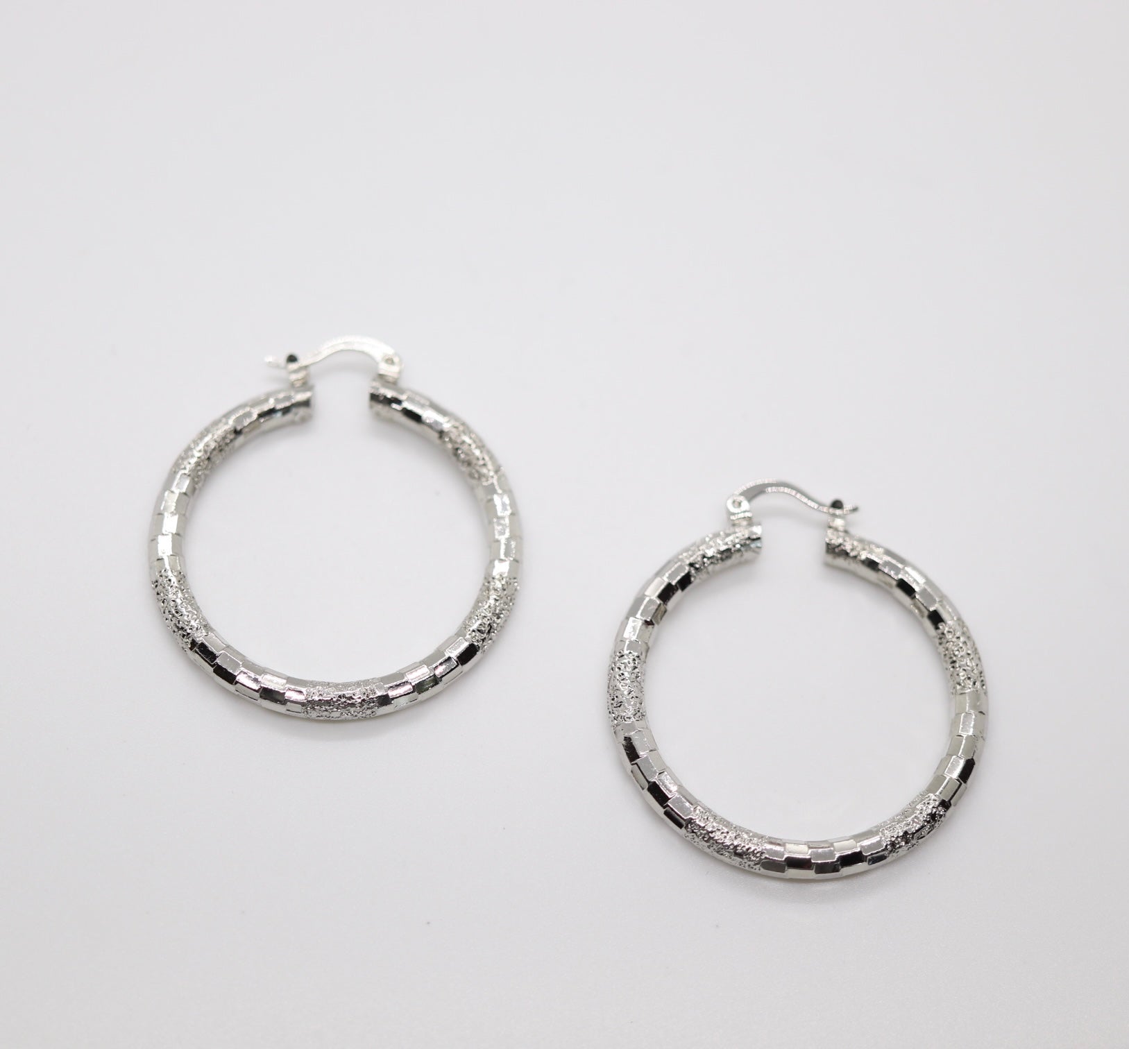 These shiny silver hoop earrings are a great accessory to add a touch of glamour to any outfit. The hoops are lightweight, which makes them comfortable to wear. The shiny silver finish adds a touch of elegance, and the hoops are just the right size to draw attention without overpowering your outfit.